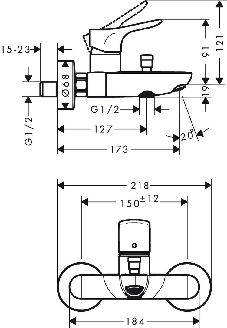 FORMAT Pro 2.0 Wannen-Einhebelmischer chrom, AP, 1/2", Ausladung 173mm, 2 Verbraucher