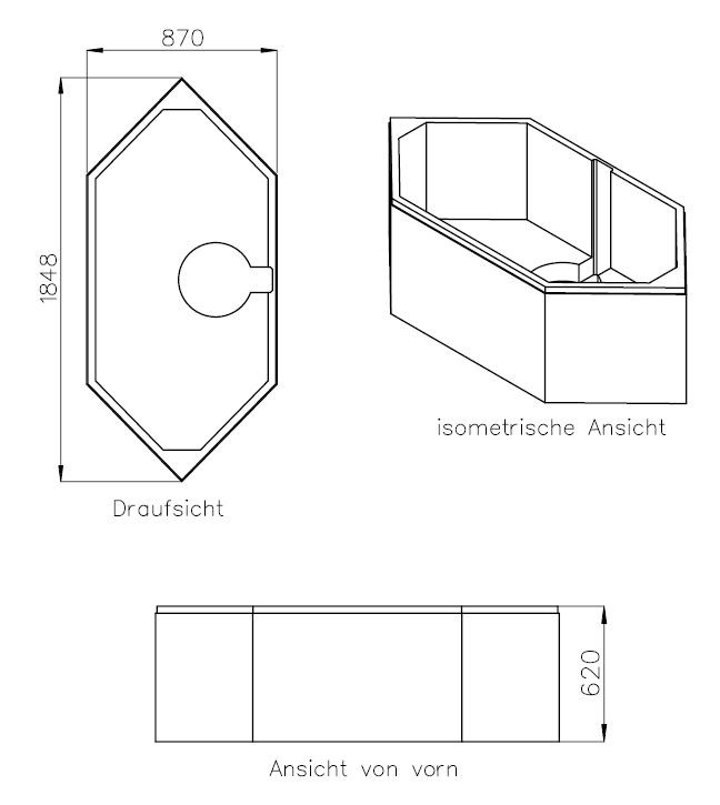 FORMAT Tec Badewannenträger 190 x 90 cm, zu FORMAT Design Acryl-6-Eck-Badewanne
