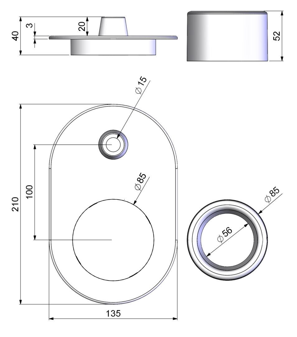 FORMAT Tec Chromgarnitur verchromt, oval, mit Tubus, für Miniblock Duo TKS