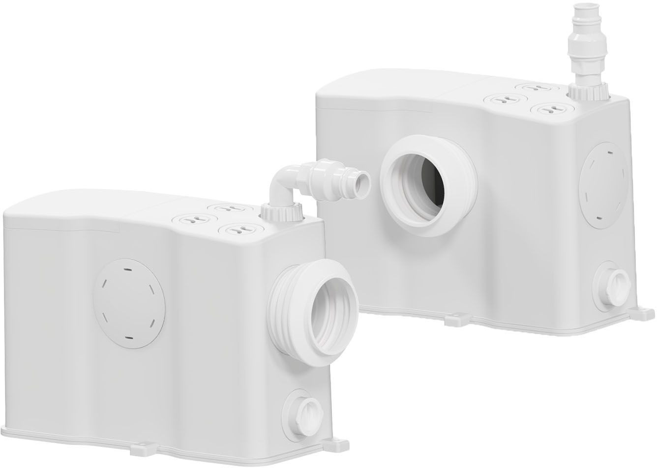 optimiertes Schneidwerk aus korrosionsfestem Sonderstahl 1.4112 mit besonders hoher Härte, Verschleißfestigkeit und Schneidleistung, Sammelbehälter aus ABS zum Direktanschluss an EURO-Toilette mit minimaler Zulaufhöhe, frontaler Zulauf möglich, Behälterentlüftung über Aktivkohlefilter, Entlüftung über Steigleitung DN 40 möglich, robuste, nassaufgestellte Pumpe, integriertes Alarmsignal bei Störung, Druckabgang 1 1/4" IG mit integrierter Rückschlagklappe oben, Abgang horizontal oder vertikal (90° Bogen), Medientemperatur max. 40°C , Schutzart IP 68 - voll überflutbar, Spannung: 230 V, Motorleistung P1: 560 W, Motorleistung P2: 350 W, Nennstrom: 2,5 A, Max. Fördermenge: 7,5 m³/h, Max. Förderhöhe: 11,0 m