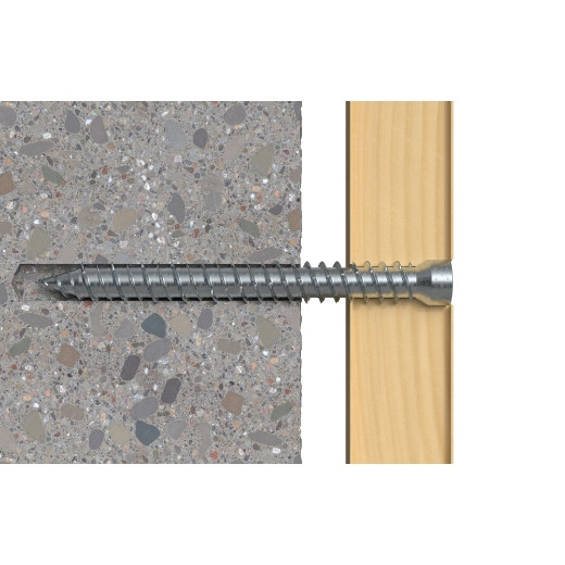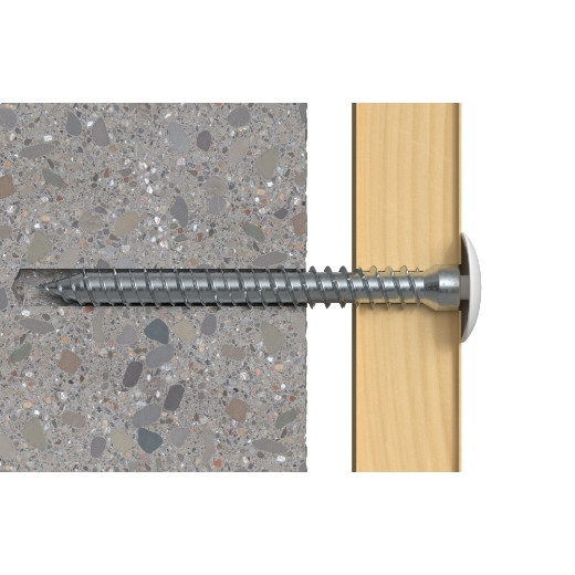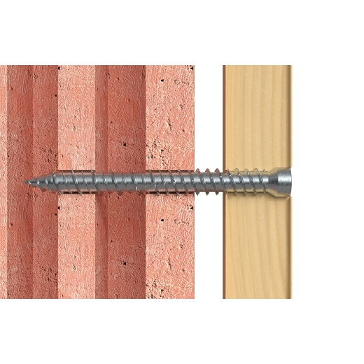 Die fischer Fensterrahmenschraube FFSZ (bis 302 mm Länge) mit Zylinderkopf ist eine Spezialschraube für die wirtschaftliche Montage von Holzfensterrahmen ohne Dübel. Das ift Rosenheim bestätigt eine besondere Eignung zur Befestigung von Kunststofffenstern im Ziegelmauerwerk. Der geringe Bohrdurchmesser von 6 mm und das Eindrehen der Schraube ohne Reinigung des Bohrloches ermöglichen eine effiziente Serienbefestigung. Das Hoch-Tief-Gewinde an der Schraubenspitze sowie die Fräsrippen reduzieren das Eindrehmoment und ermöglichen eine kräfteschonende Montage. Das durchgehende Spezialgewinde verhindert das Heranziehen des Fensterrahmens gegen den Untergrund. Damit wird dieser zug- und spannungsfreie im Baustoff befestigt.