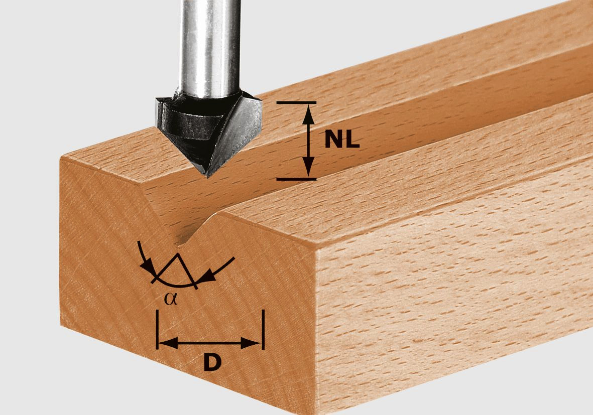 - Zum Fräsen von V-Nuten und Ziernuten