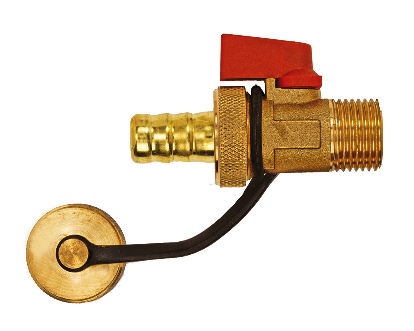 Flamco KFE-Kugelhahn 1/2", mit Kappe, Schlauchtülle und Hebel, Messing