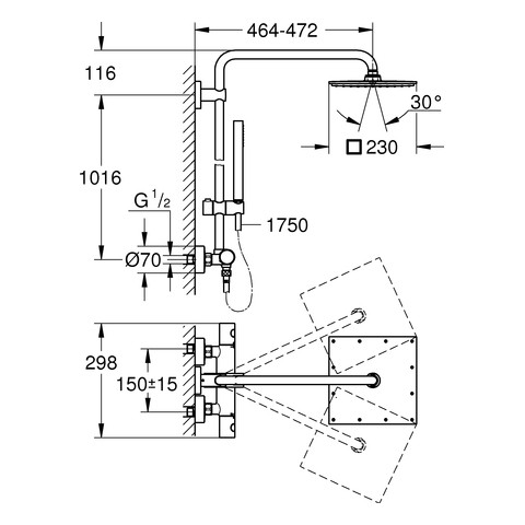 GROHE Duschsystem Euphoria 230 mit AP-Thermostat, Wandmontage, chrom