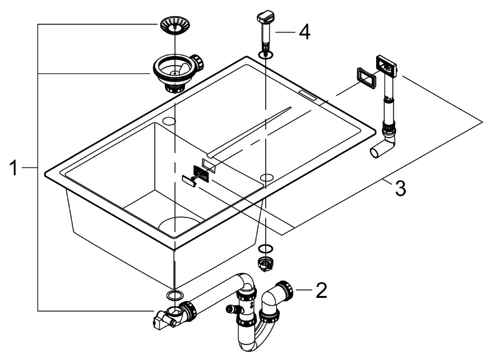 Material Quartzkomposit, Whisper, min. Maß Unterschrank 50 cm, 1 Becken 34,7 x 44 x 20,5 cm, Außenradius R6, Innenradius R10, FastFixation Schnellbefestigungssystem, Spüle links und rechts einbaubar, Ausschnittmaß 76,5 x 48,5 cm, Ablauf Exzenterbedienung, Zubehör beiliegend: Exzenterbedienung, Ablaufgarnitur, Siebkorbventil, Montageset, alternative Push-Exzenterbedienung in rund (40 986 SD0) separat bestellbar, Anzahl der enthaltenen Befestigungsklammern 10, hitzebeständig bis zu 180 °C