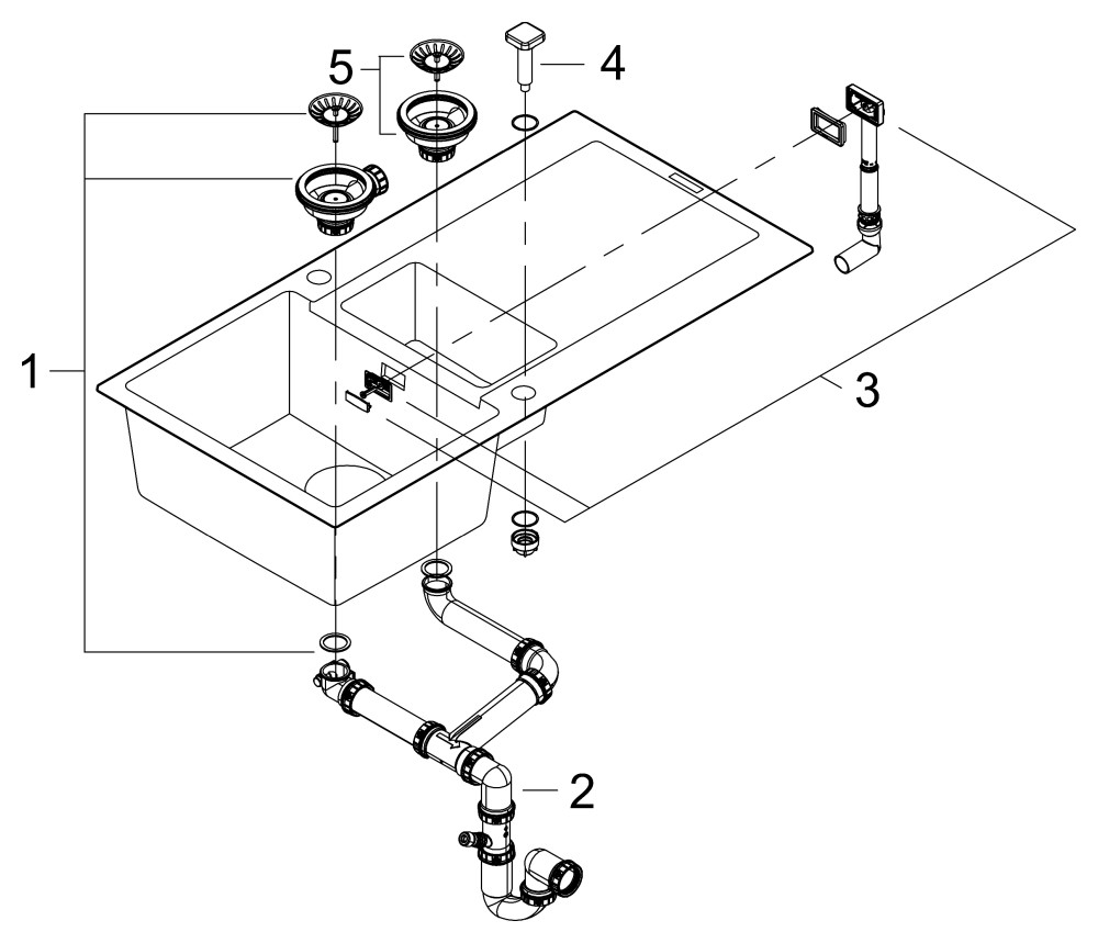 Material Quartzkomposit, Whisper, min. Maß Unterschrank 60 cm, 1 Becken 34,5 x 44 x 20 cm, 0,5 Becken 15,5 x 29,5 x 14,6 cm, Außenradius R6, Innenradius großes Becken R12, kleines Becken R10, FastFixation Schnellbefestigungssystem, Spüle links und rechts einbaubar, Ausschnittmaß 98 x 48 cm, Ablauf Exzenterbedienung, Zubehör beiliegend Exzenterbedienung, Ablaufgarnitur, Siebkorbventil, Montageset, alternative Push-Exzenterbedienung in rund (40 986 SD0) separat bestellbar, Anzahl der enthaltenen Befestigungsklammern 12, hitzebeständig bis zu 180 °C