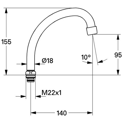 GROHE Rohrauslauf 13072, schwenkbar, Auslauf mit Mousseur, Verschraubung M 22 x 1, Ausladung 140 mm, chrom
