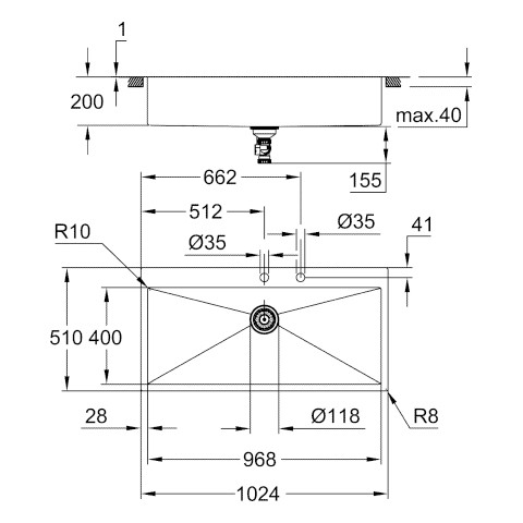 GROHE Spülbecken K800 120-S 102,4/51 1.0 102,4x51cm, aufliegend oder flächenbündig, 1 Becken, Edelstahl