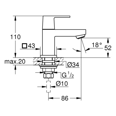 | Aufbauhöhe Unterkante Hahnauslass | 52 mm |