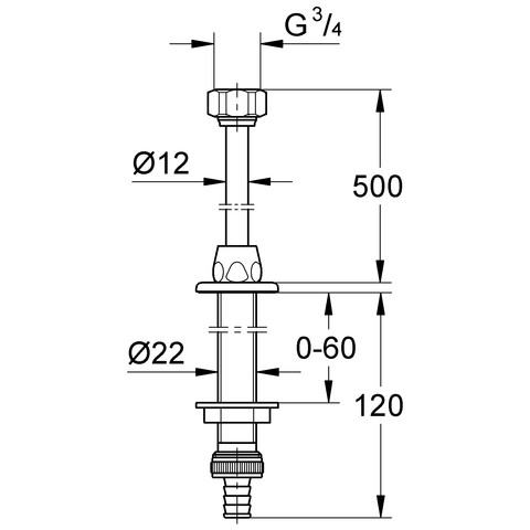 GROHE WAS-Spülendurchführung 1/2", bis 7cm verstellbar, chrom