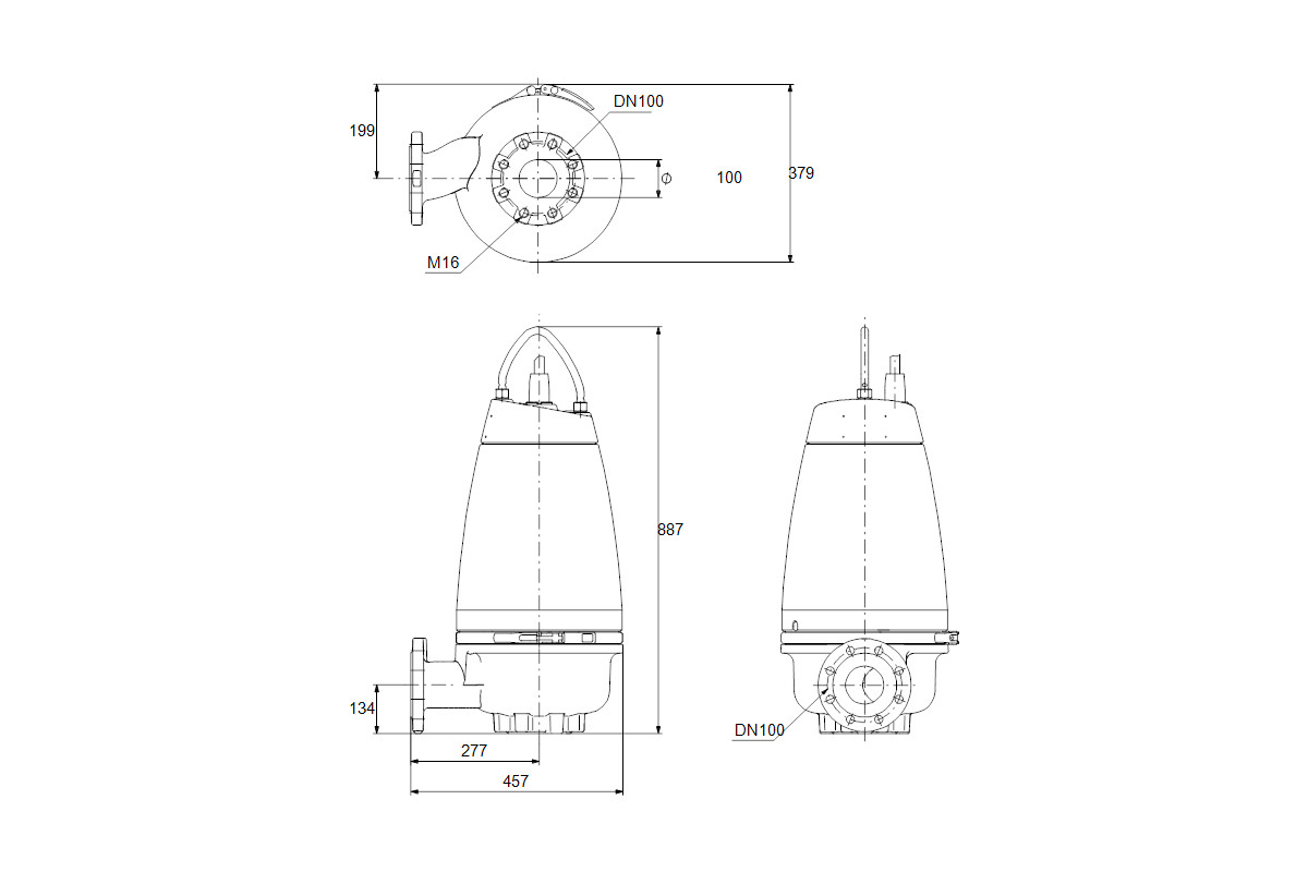GRUNDFOS Abwasserpumpe Freistromlaufrad SEV.100.100.30.4.50D 10m Kabel