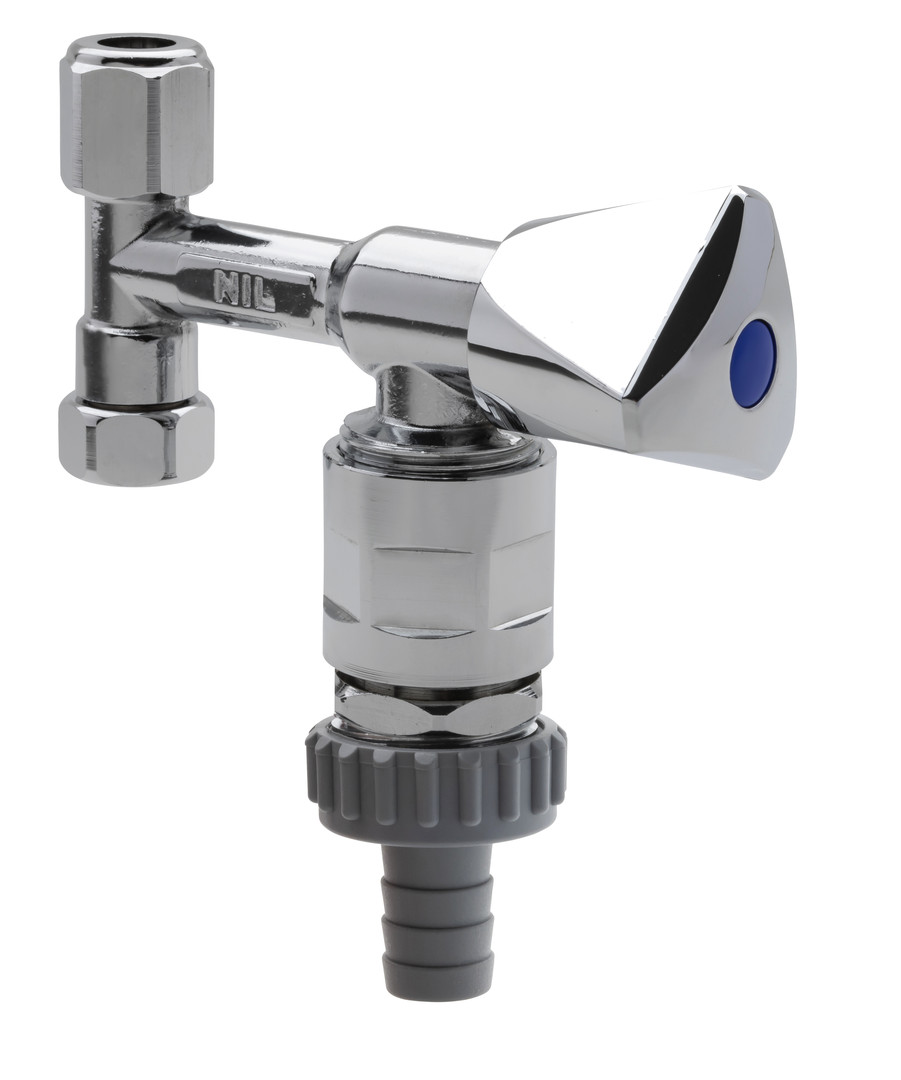 Gampper Geräteanschussventil verchromt, DN 10, 3/8", 3/4" Schlauchverschraubung, Rückflussverhinderer und Rohrbelüfter