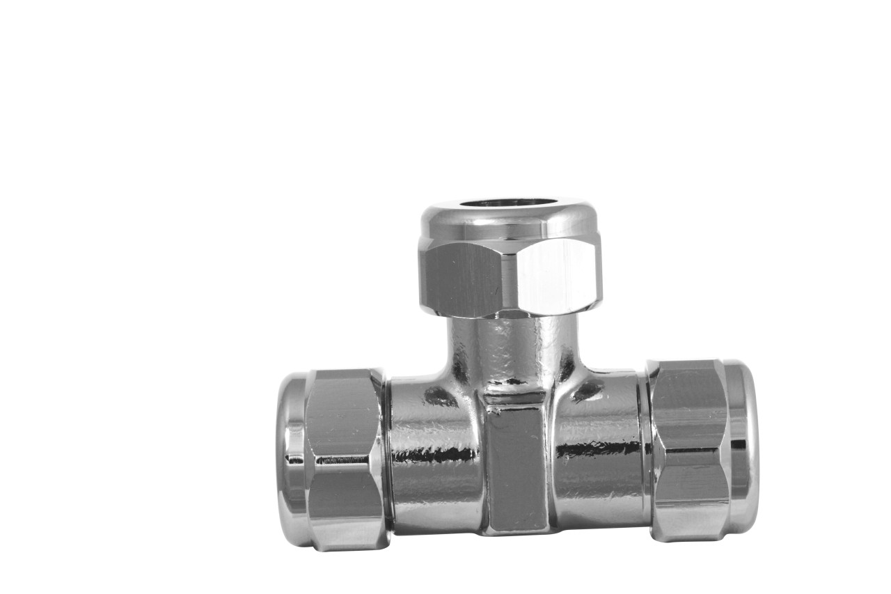 Gampper T-Verschraubung 3/8" x 3/8" x 3/8", verchromt, für Cu-Rohr Ø 10 mm