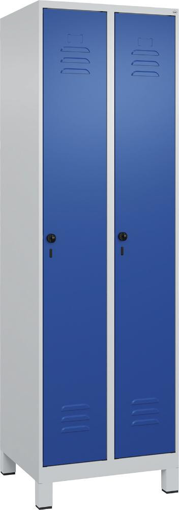 Gard.-Schrank TW CLASSIC B600xT500xH1950 mm RAL 7035/5010, 2 Abteile mit 100 mm hohen Füßen