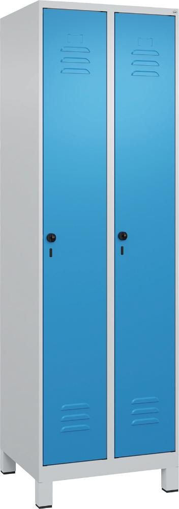 Gard.-Schrank TW CLASSIC B600xT500xH1950 mm RAL 7035/5012, 2 Abteile mit 100 mm hohen Füßen