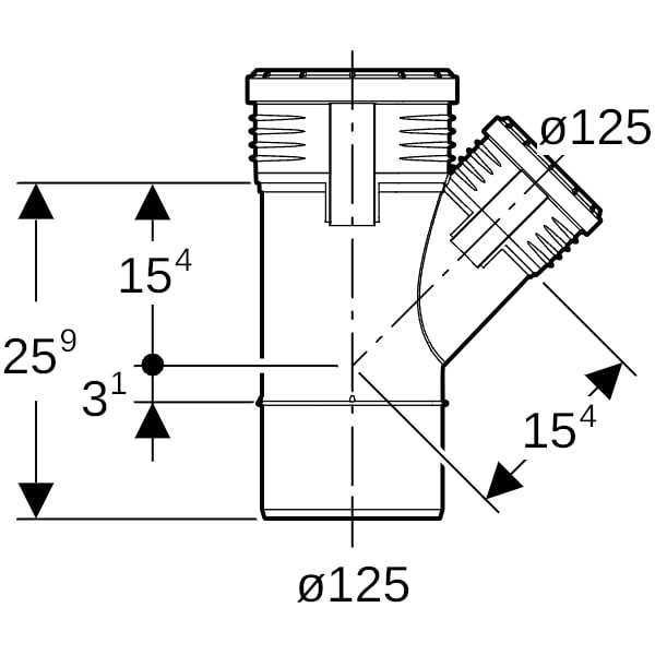 Geberit Abzweig Silent PP DN 125/125, 45Grad, schalloptimiert