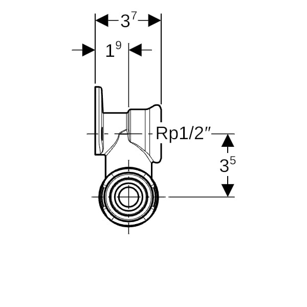 Geberit Anschluss-T-Stück PushFit 20 mm x Rp 1/2, 90Grad, 37mm, Messing