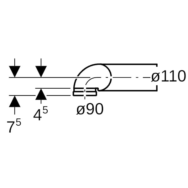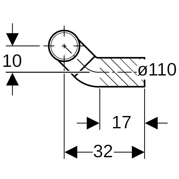Geberit Anschlussbogen PE DN 100/90, 90°, PE-HD, für Wand-WC, links gekröpft