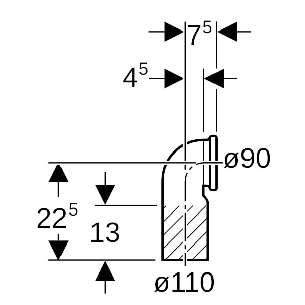 mit Erweiterung, zum Anschließen von Sanitärapparaten mit horizontalem Abgang, für Kombifix Elemente für Wand-WC, für Sanbloc Installationsbausteine für Wand-WC, zum vertikalen Einbau, zur Gebäudeentwässerung, mit Dichtung aus EPDM, mit Schutzdeckel
