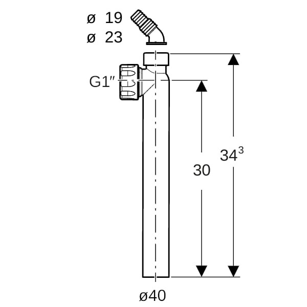 Geberit Anschlussbogen mit Schlauchanschluss: d=40mm, d1=19/23mm, weiß-alpin