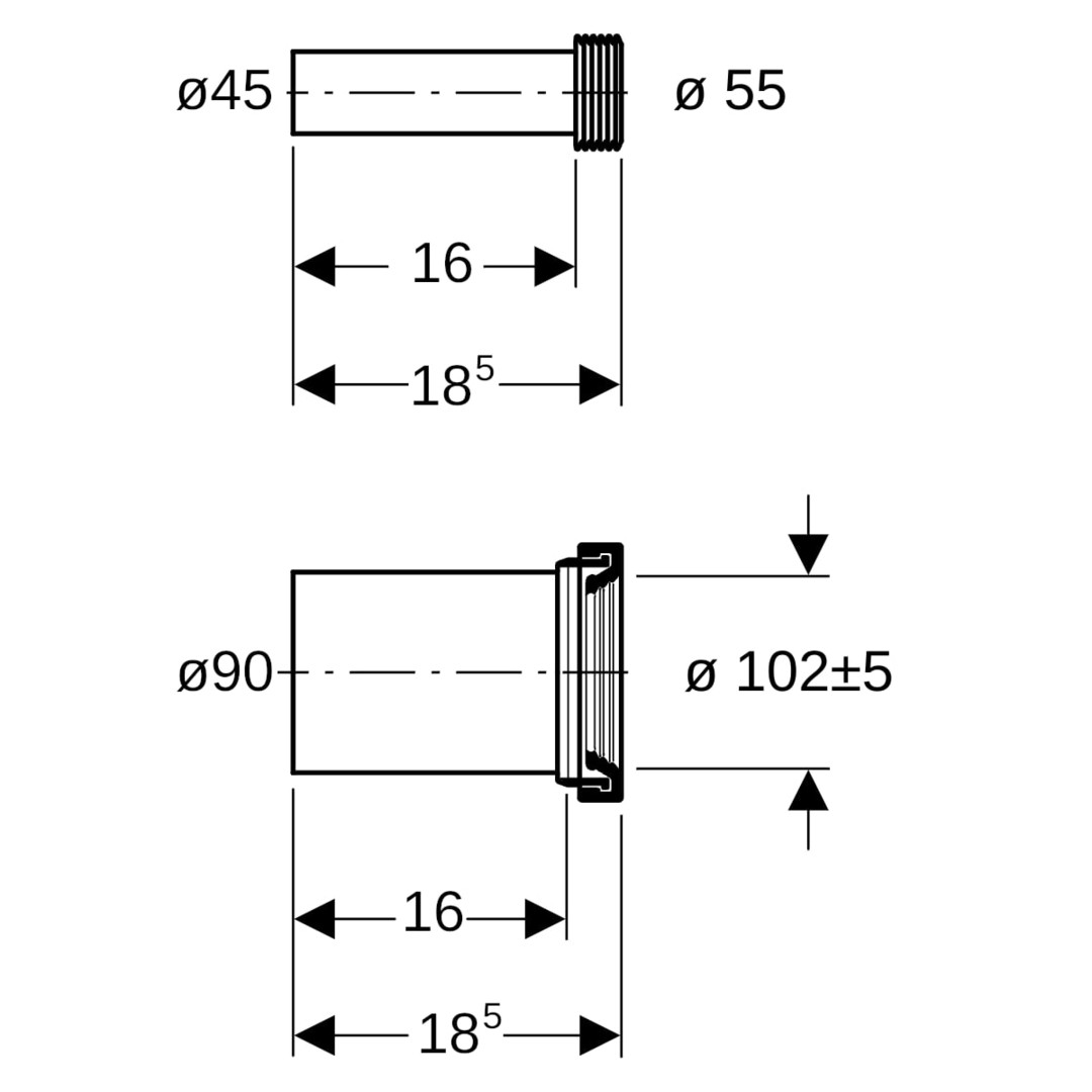 Geberit Anschlussgarnitur Ø 90 mm, 185mm, für Wand-WC, PE/PP, mattverchromt
