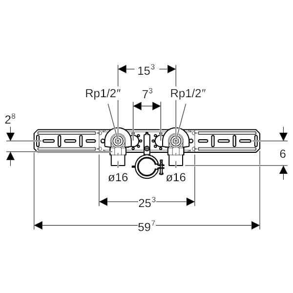Geberit Anschlusswinkel Ø 16 mm x Rp 1/2, 597 mm, 90Grad, 2-fach, vormontiert