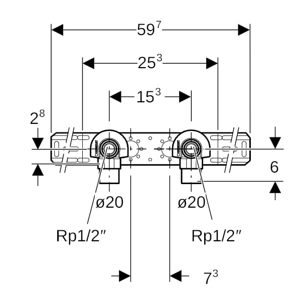 Geberit Anschlusswinkel FlowFit Ø 20 mm x Rp 1/2, 597 mm, 90Grad, 2-fach
