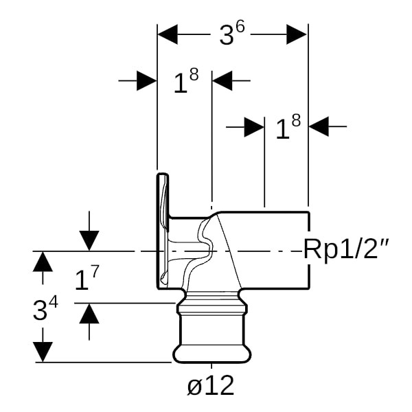 Geberit Anschlusswinkel Mapress Ø 12 mm x Rp 1/2, Kupfer, 90°, Rotguss