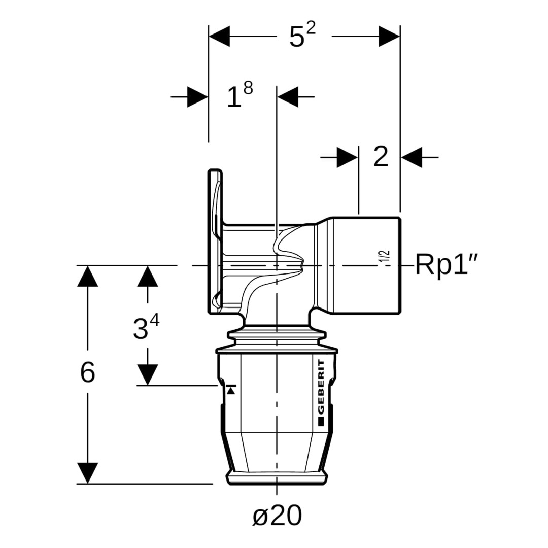 Geberit Anschlusswinkel PushFit 20 mm x Rp 1/2, 90Grad, 5,2cm, Messing 1133711