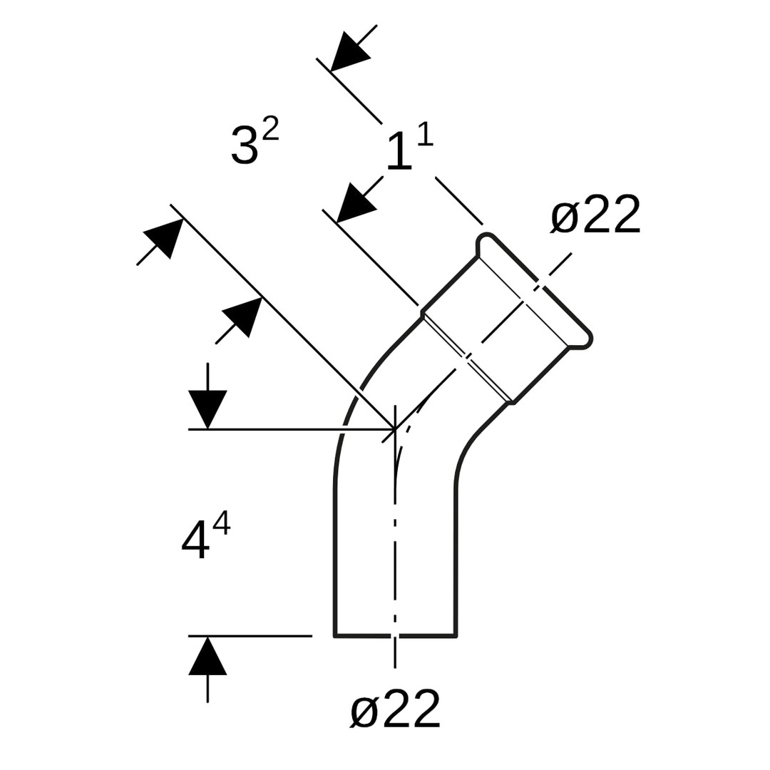 Geberit Bogen Mapress Ø 22 mm, 45°, mit Einschubende, Kupfer