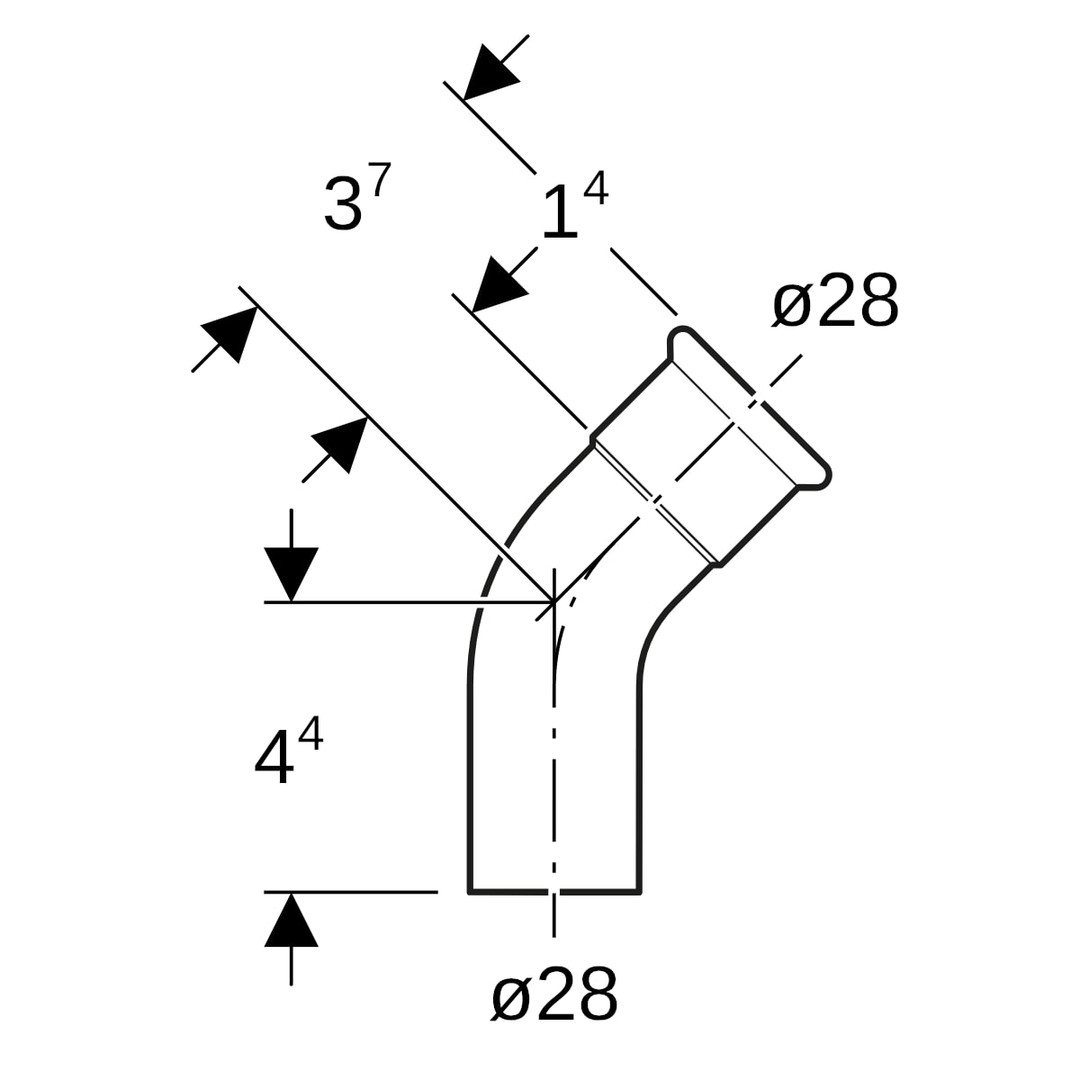 Geberit Bogen Mapress Ø 28 mm, LABS-frei, 45°, mit Einschubende, Edelstahl