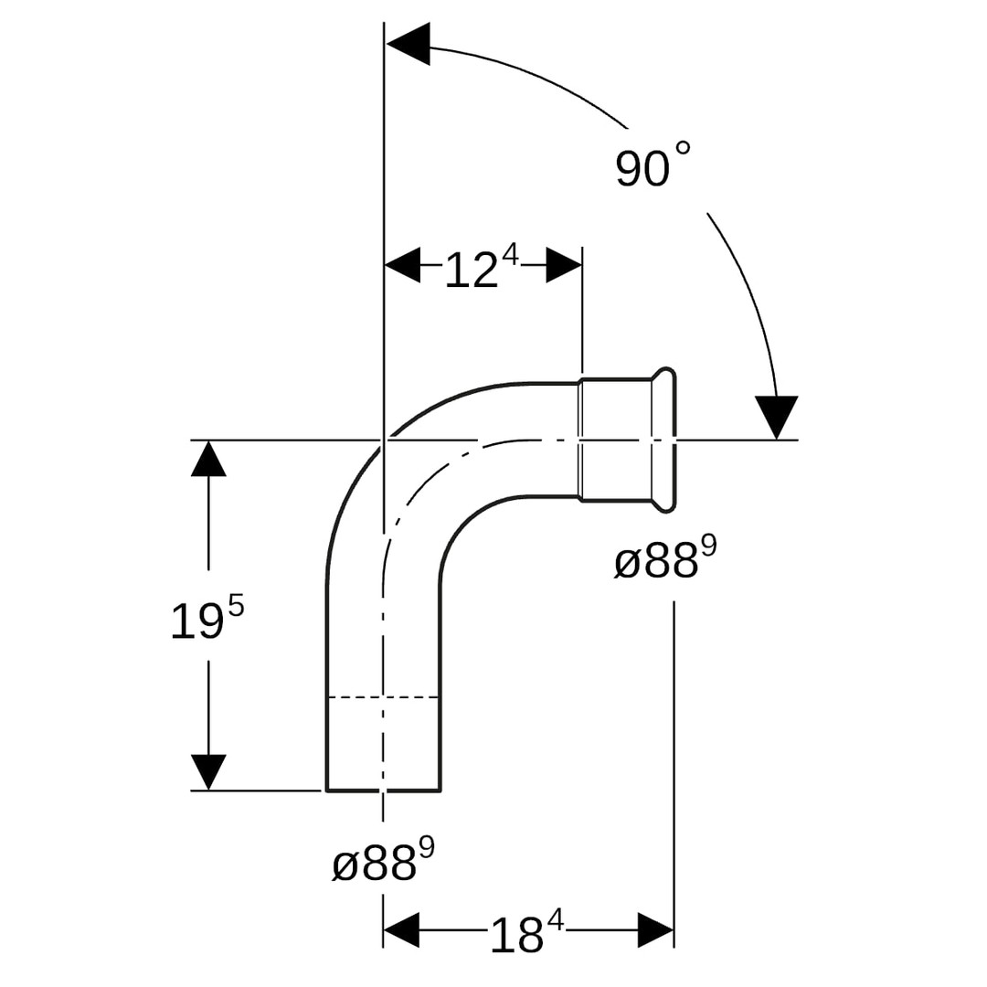 Geberit Bogen Mapress C-Stahl Ø 88,9 mm, 90°, mit Einschubende