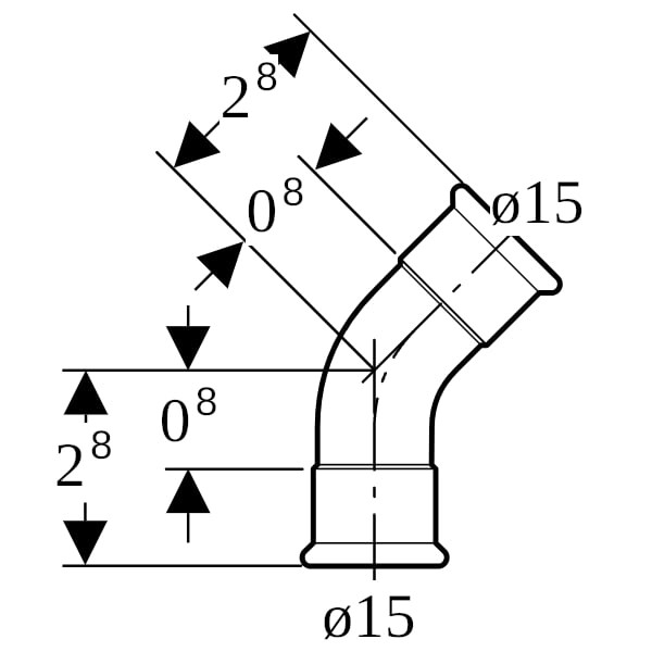 Geberit Bogen Mapress Therm DN 12, Durchmesser 15 mm, Länge 2,8 cm, 45Grad