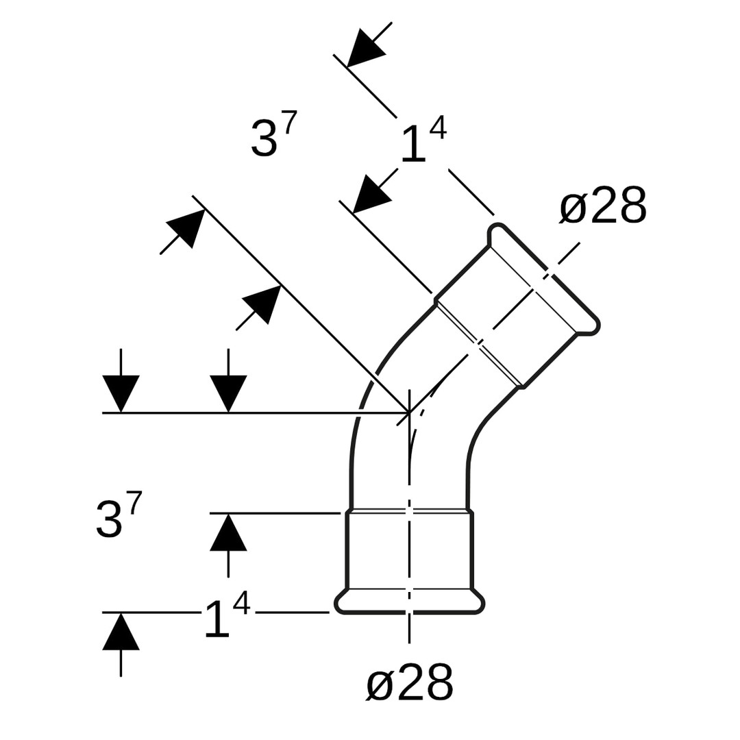 Geberit Bogen Mapress Therm DN 25, Durchmesser 28 mm, Länge 3,7 cm, 45Grad
