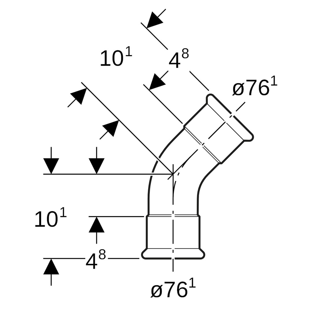 Geberit Bogen Mapress Therm DN 65, Durchmesser 76,1 mm, Länge 10,3 cm, 45Grad
