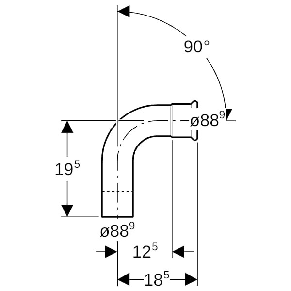 Geberit Bogen Mapress Therm DN 80, Durchmesser 88,9 mm, Länge 18,5 cm, 90Grad, mit Einschubende