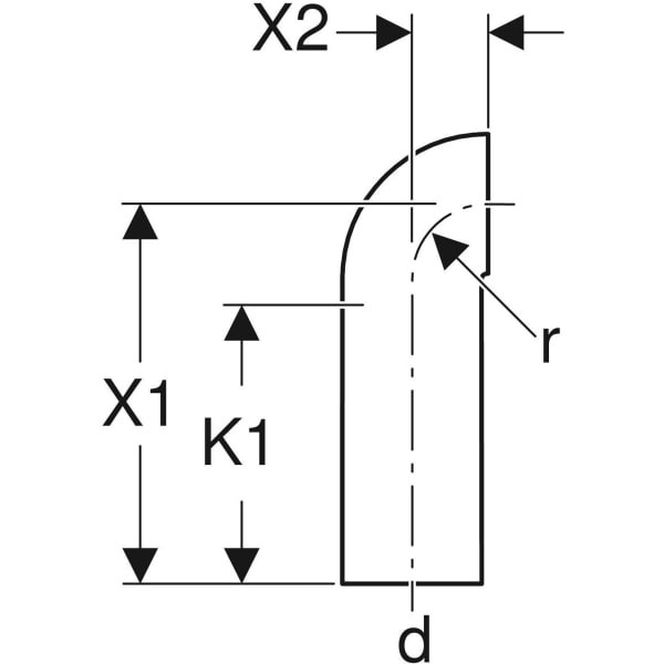 Geberit Bogen PE DN 100, 90Grad, mit langem Schenkel, kleiner Radius, PE-HD