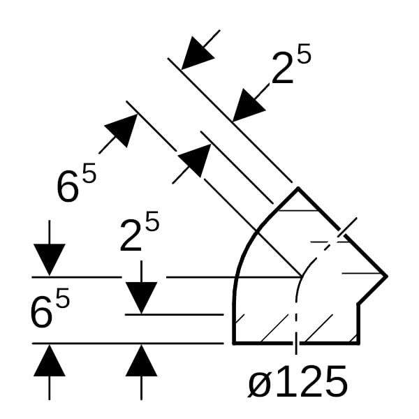 Geberit Bogen PE DN 125, 45Grad, PE-HD
