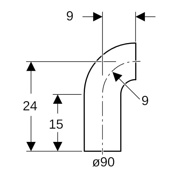 Geberit Bogen PE DN 90, 90Grad, mit langem Schenkel, PE-HD