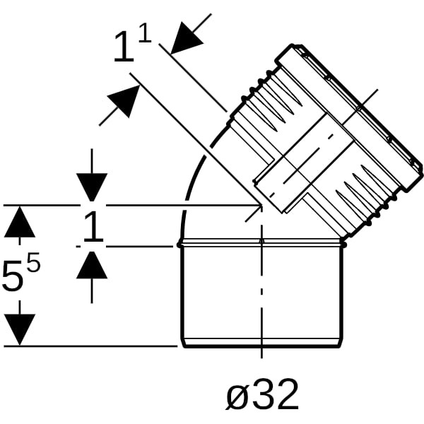 | Rohraußendurchmesser Anschluss 1 | 32 mm |
