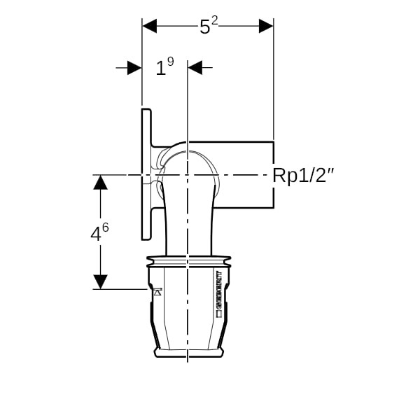 Geberit Doppel-Anschlusswinkel PushFit Ø 20 mm x Rp 1/2 x 16 mm, 90Grad, 52mm, Rotguss