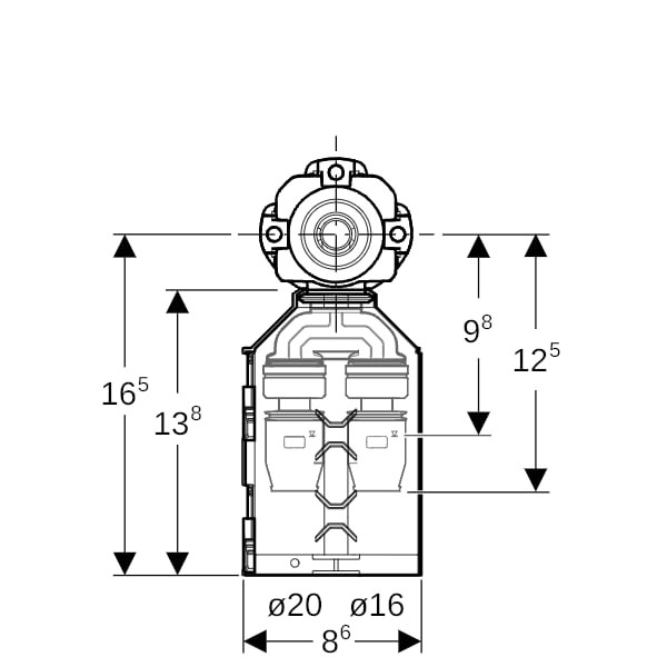 Geberit Doppelanschlussdose PushFit DN 15/15/12, Ø 20/16 mm, 90Grad, mit Schnellkupplung