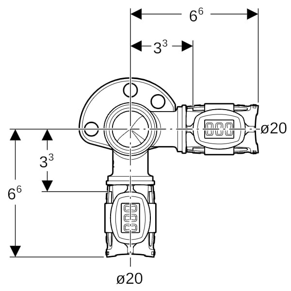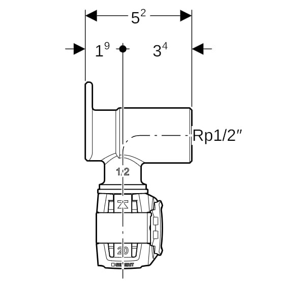 Geberit Eckanschlusswinkel FlowFit Ø 20 mm x Rp 1/2 x 20 mm, 53 mm, 90Grad