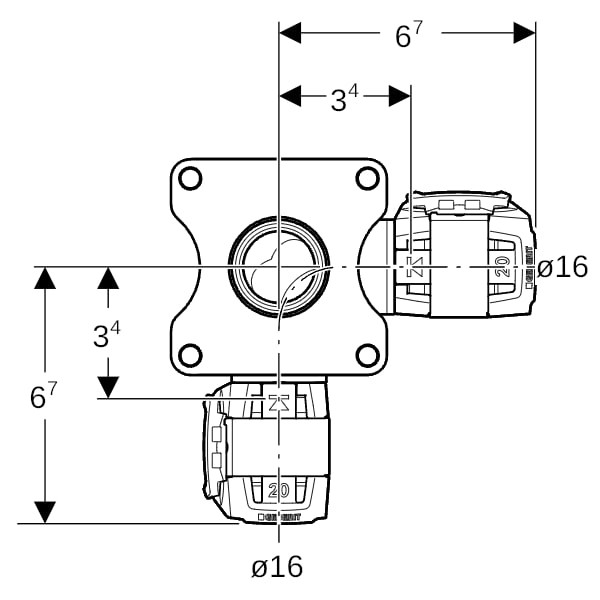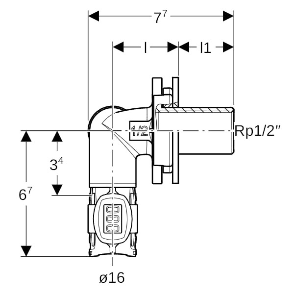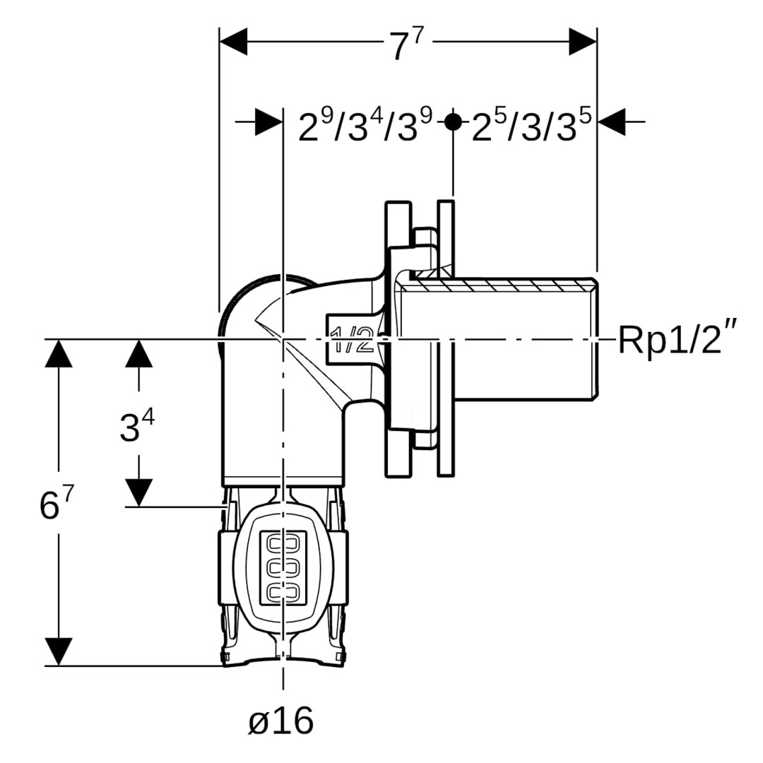 Geberit Eckwanddurchführung FlowFit DN 12/15/12, Durchmesser 16 mm, 90Grad, 1/2"