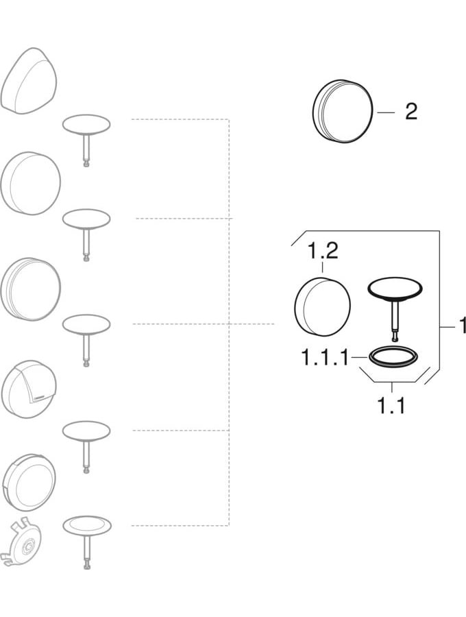 bestehend aus Betätigungsrosette, Ventilstopfen und Befestigungsmaterial