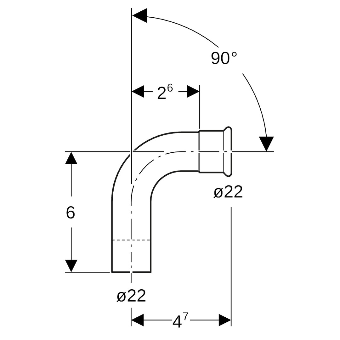 Geberit Gas-Bogen Mapress Ø 22 mm, 90Grad, mit Einschubende, Kupfer