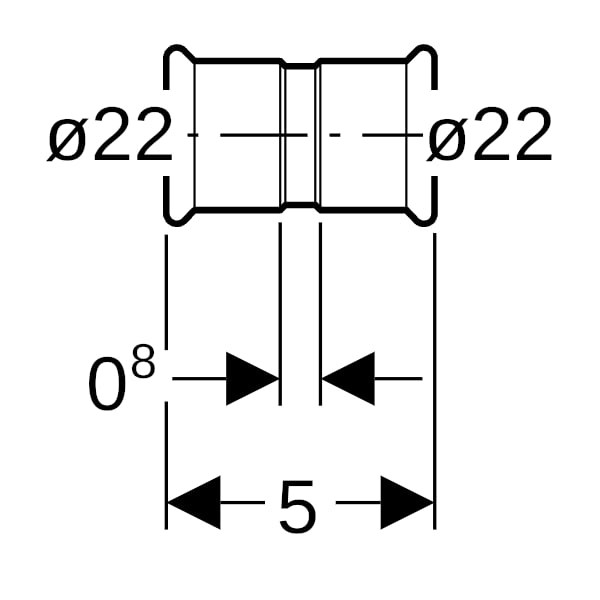 Geberit Gas-Muffe Mapress Ø 22 mm, für Natur- und Flüssiggas, Edelstahl