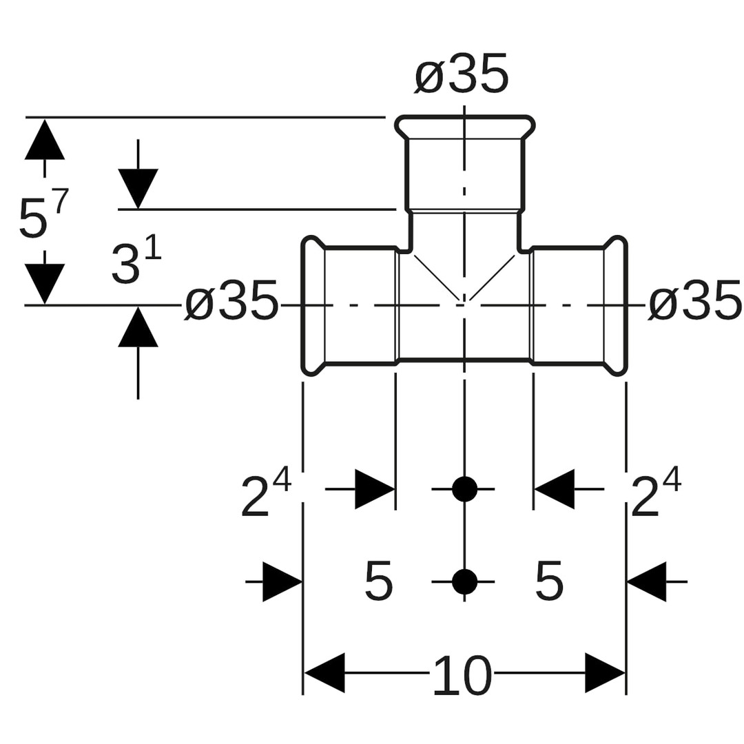 Geberit Gas-T-Stück Mapress Ø 35 mm, egal, Edelstahl