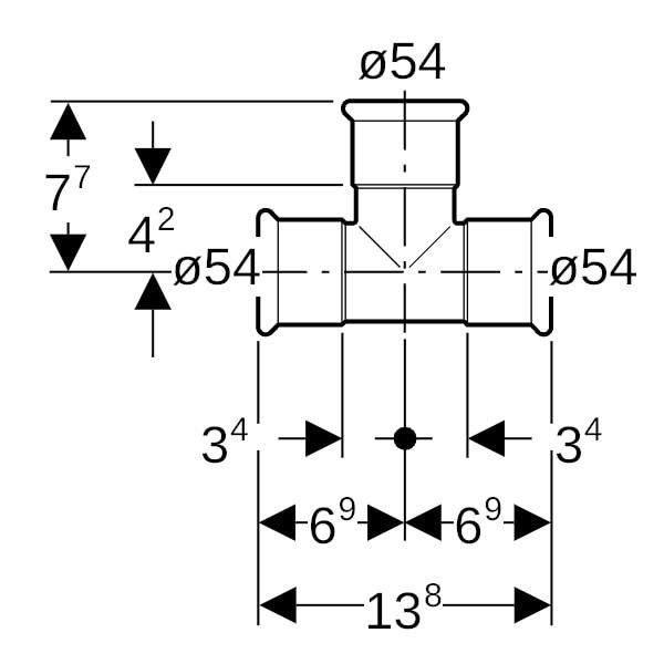 Geberit Gas-T-Stück Mapress Ø 54 mm, egal, Edelstahl