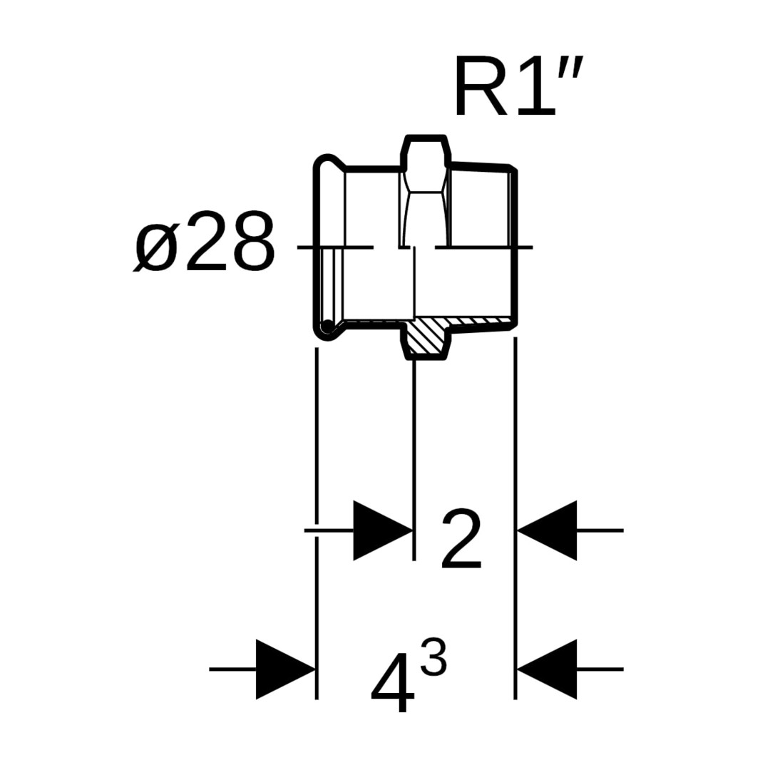 Geberit Gas-Übergang Mapress Ø 28 mm x R 1, Kupfer, mit Außengewinde, Rotguss